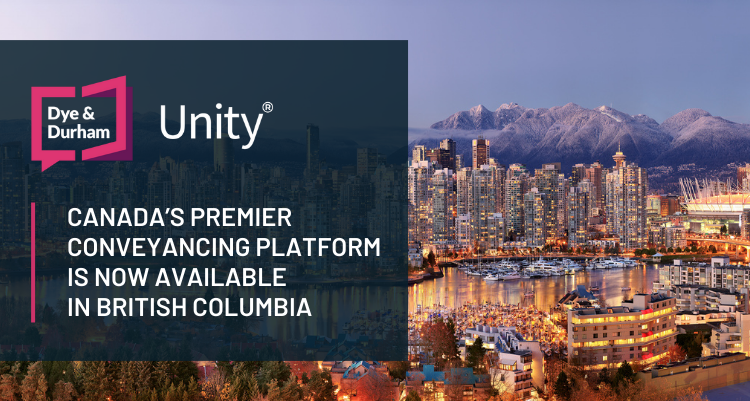 Dye & Durham has launched Unity®, its flagship cloud-based conveyancing platform, in British Columbia, bringing its most widely used real estate transaction solution to the province with workflows customized for B.C. legal professionals.